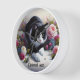 A handsome black and white cat crouches in beautiful flowers in this modern, vibrant design.