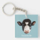 Beautiful Black and White Cow Face on Sky Blue Keychain