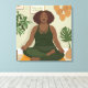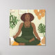 Beautiful black curvy woman is meditating at home. She is relaxed and calm. She loves herself and loves the world around. She is beautiful externally and internally. The drawing is full of light, warmth and peace.