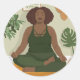 Beautiful black curvy woman is meditating at home. She is relaxed and calm. She loves herself and loves the world around. She is beautiful externally and internally. The drawing is full of light, warmth and peace.