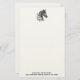 Stationery paper with a beautiful illustration of a black horse head with a fancy floral embellishment by it's neck. Elegant and classy animal painting.