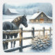 Beautiful Black Horse on a Christmas Farm Square Sticker