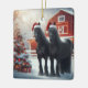 Beautiful Black Horses, Christmas Tree and Barn Ceramic Ornament