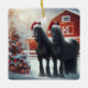 Beautiful Black Horses, Christmas Tree and Red Rustic Barn Ceramic Ornament