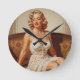 Beautiful blonde pin-up 50's art round clock