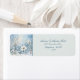 Blue and white winter flowers on a blue winter scene of snow and trees