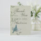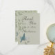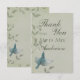 Beautiful painting of a blue warbler bird flying upwards placed on a soft ash green mottled background with elegant leafy vines. Stand out from the crowd with this beautiful and elegant unique wedding thank you card. The design is given a faux fabric texture for effect. This thank you card design also comes on many other stationery products to suit all your wedding set needs.