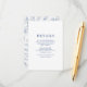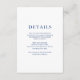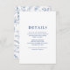 Beautiful blue and white wedding guest detail card features pretty illustrated flowers and classic typography. The back is a beautiful romantic floral pattern.