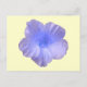 This postcard features a photograph of a Nasturtium flower. The photo has been artificially coloured resulting in a stunning pale blue coloured flower with white and light purple tints. The background is a pale sunshine yellow colour.