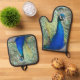 Beautiful Blue Peacock Feathers Oven Mitt & Pot Holder Set
