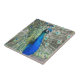 Ceramic tile featuring the photo image of a beautiful, blue Peacock with colourful fantail feathers. Select your tile size. Makes a great kitchen trivet!