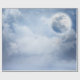 Wrapping paper with a magical fantasy sky with fluffy blue clouds and a big beautiful moon. 2 white swans flying off together.