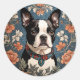Beautiful Boston Terrier William Morris Inspired Classic Round Sticker