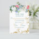 © Socialite Designs & LICENSORS. Elegant gold flourish, with teal and gold lettering, wedding RSVP with watercolor florals, in white, purple/blue, pink and green, ready to be personalized for your special event. Font style, text and paper type can be changed. Need HELP with customizing or additional products with this design? Please do not hesitate to contact Socialite Designs.