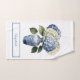 beautiful bouquet of hydrangea flowers arranged in a vase. The hydrangeas are in shades of light blue and creamy white, with delicate petals that create a full, rounded shape. The vase is a classic white and blue design, likely inspired by traditional porcelain or ceramic styles, with intricate patterns and floral motifs that complement the flowers. The entire scene has a soft, watercolor-like quality, giving it a gentle and elegant appearance. The green leaves of the hydrangea add a natural touch, enhancing the overall composition.