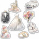 This 8-sticker pack features beautiful watercolor illustrations of wedding elements.