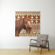 Beautiful Brown horse on Earthy Geometric Pattern Tapestry