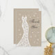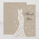Delicate snowflakes and a romantic lace wedding dress accent this winter thank you on an illustrated burlap background. There is lots of room on the back for your personal message. Scroll down to see coordinating items in the collection.