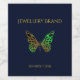 Add your details on this green and brown ombre butterfly on dark blue background design for your jewellery business.