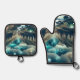 Beautiful Camping Scene with Mountains and Tent Oven Mitt & Pot Holder Set