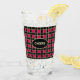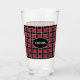 Beautiful black and red square chequered pattern glass. CHEERS text can be customized.
