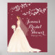 Modern chic bride set on a wine burgundy background with pretty white branches bridal shower poster. Matching bridal shower invitations available in our shop in a large variety of popular wedding colours!