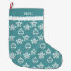 Beautiful Christmas pattern on teal background Christmas stocking. Name can be personalized.