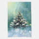 Beautiful Christmas Tree with Snow and Gold Lights Kitchen Towel
