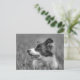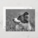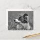 This black and white photo of an alert border collie dog in a cornfield makes a lovely greeting for any dog lover out there.