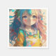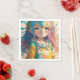 Anime Birthday Favour napkins. Beautiful Anime girl with pastel colours, Colours used are pink, teal, orange, blue, purple and blue. Cute and colourful children's Ai art. generatviecontent