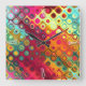 Beautiful cool abstract squares circles glass glow effects peacock blue green pink red yellow orange bright summer colours retro pattern image