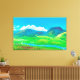 Clean, crisp, blue skies and bright greens are present in this landscape painting.