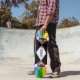 Beautiful diamond and rainbows on black background skateboard. One can be personalized. A crystal clear diamond reflects all the beautiful colours of life.