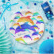 Brighten up your celebration with these playful and colourful dolphins. Dolphins are in a rainbow of colours -- blue, green, yellow, red, and purple. Complete the custom look with your first name.