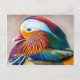 Postcard featuring a glorious mandarin duck in profile, with its orange, blue, green and white feathers shown in detail. A fun way to show your love and appreciation of ducks, or for corresponding with the duck and nature lovers in your life. Photo taken in Arcadia, California.