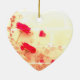 Faded flowers are on the front and more faded flowers are on the back of a heart-shaped ceramic Valentine tree ornament.