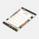 Striped to-do post-it notepad with orange and purple flowers, and faux gold details.