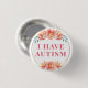 This elegant button features the slogan 'I have autism' in elegant lettering, surrounded by a floral border of peach coloured wild roses. You can edit the text as needed. 🌹 For more special needs pins, visit my store: Zazzle.com/Elder_Vitality 🌹 For custom orders, message me on Zazzle