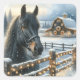 Beautiful Festive Black Horse on Farm Christmas Square Sticker
