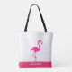 Beautiful magenta flamingo on pink and white Tote Bag.