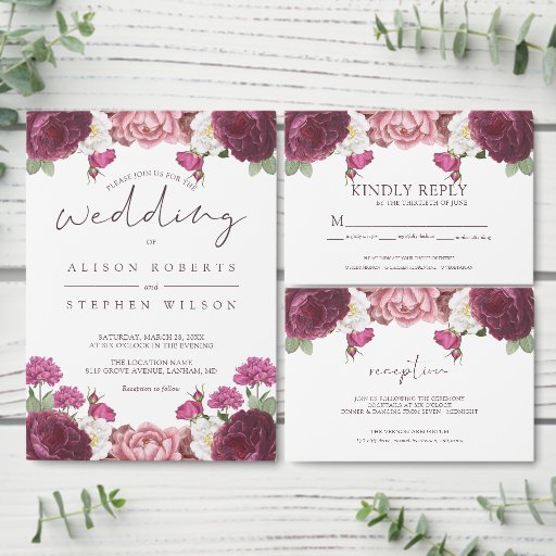 Beautiful Floral Burgundy Wedding Invitation