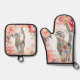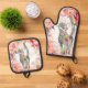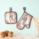 Beautiful Floral Cat Oven Mitt & Pot Holder Set