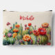 This beautiful cacti large accessory pouch is perfect for anyone who loves cacti or plants in general. The design features a variety of flowering cacti on a tan background in a watercolor style. The name on the pouch is customizable and would make a great personalized gift for a birthday, bridesmaid's gift, mother's day gift or Christmas gift. This pouch can be used for a variety of things such as a toiletry bag, cosmetic bag, travel kit and much more.