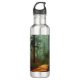 Beautiful and serene AI assisted fantasy digital artwork steel water bottle features wooden path thru misty forest trees.