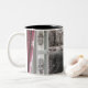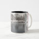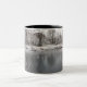 Beautiful frozen lake scene through an open window Two-Tone coffee mug