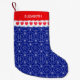 Beautiful hearts and modern geometric shape pattern on blue background Christmas stocking. Name can be customized.