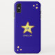 Elegant beautiful glittering golden star on blue background iPhone XS Max Case. Text can be personalized.