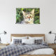 Beautiful canvas print featuring an original close-up photograph of a lovely grey tabby cat with big bright green-yellow eyes.