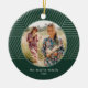 Beautiful Green Geometric Pattern Photo Christmas Ceramic Ornament