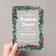 Beautiful acrylic Christmas dinner invitation with your invitation wording in white inside a frame of berry twigs and silver green sprigs against frosted acrylic. Greenery Christmas dinner invitation with custom text and a berry wreath frame in traditional Christmas colours, red and green. Traditional Christmas dinner acrylic invitation with a lovely illustration of a wreath framing the pretty white text.